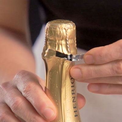 You could try the whole 'tapping the bottle inside your shoe against a wall' method (which everyone's heard about but few have seen actually.